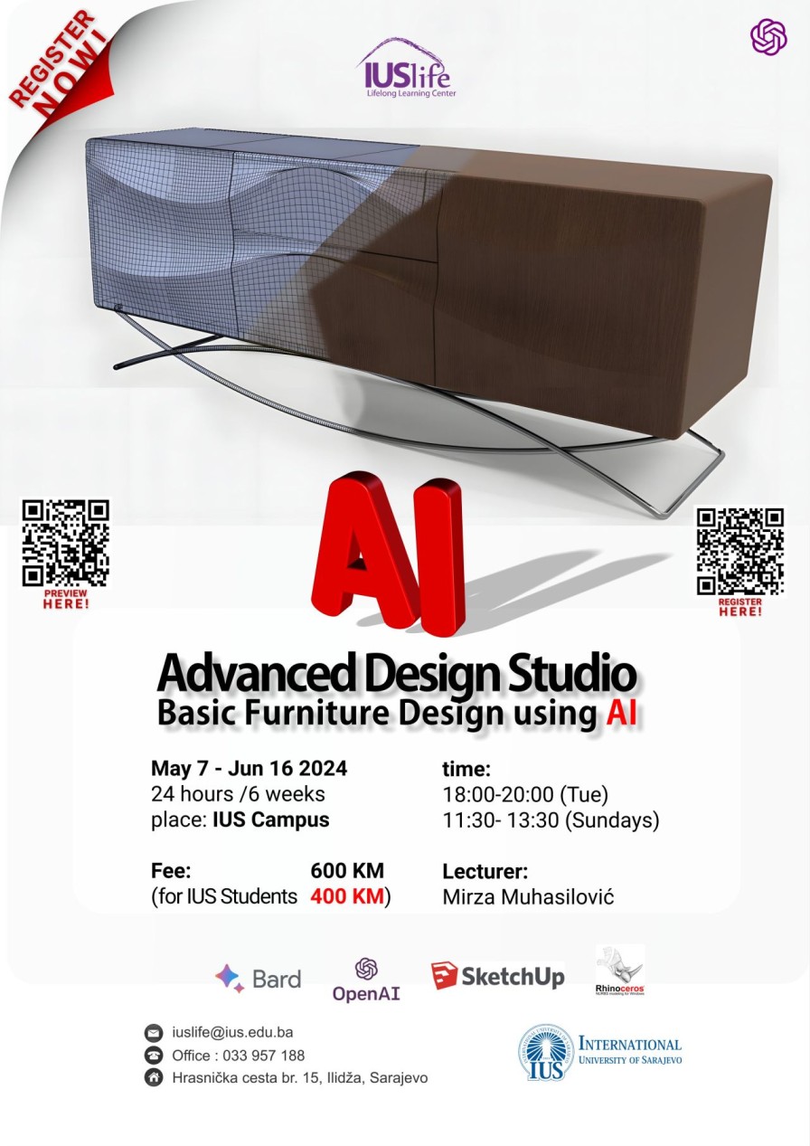 The primary objective of the AI Furniture Design course is to provide students with comprehensive training in leveraging artificial intelligence (AI) tools and workflows for creating innovative furniture designs.