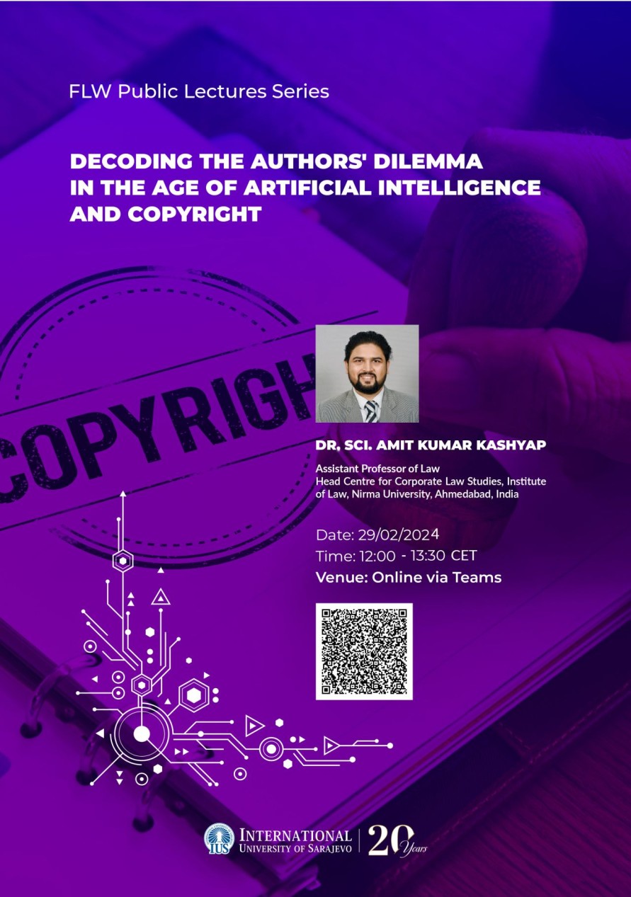The lecture will focus on addressing the complex legal landscape of copyright when it comes to works created by Artificial Intelligence (AI).