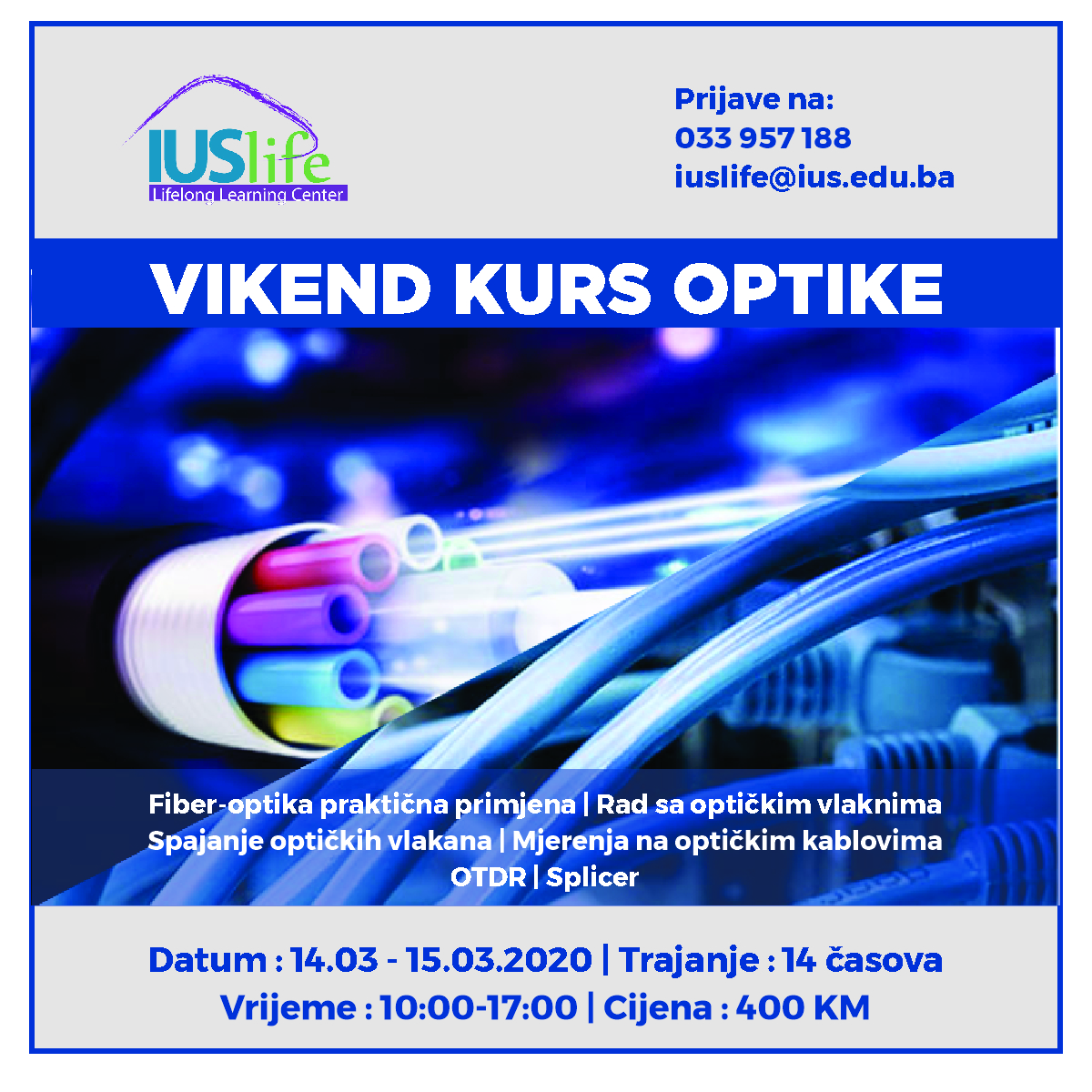 US Life centar za cjeloživotno učenje, Internacionalnog univerziteta u Sarajevu (IUS), u saradnji sa MICOM BH organizuje VIKEND KURS OPTIKE za inžinjere, studente, tehničare i sve zainteresirane.