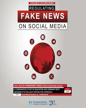 IUS Faculty of Law (FLW) is organizing a lecture titled "Regulating Fake News on Social Media Platforms: A Comparative Study in Singapore and Germany with Reference to Least Restrictive Approach". The lecture will be delivered by Assistant Prof. Dr. Prabhpreet Singh, Christ University Lavasa.