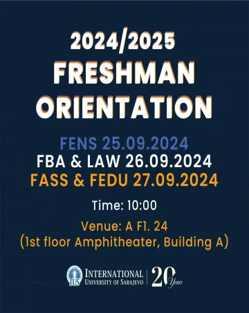 International University of Sarajevo (IUS) is organizing Freshman Orientation Week 2024 on September 25-27, 2024.  IUS will assist the freshmen to make their transition to university life as smooth as possible as they are about to embark on their educational journey.