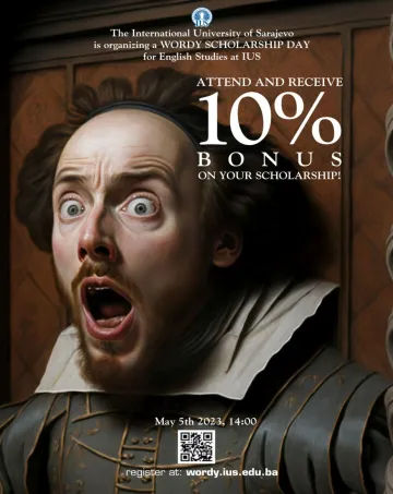 Are you interested in studying English Language and Literature at IUS? Attend Wordy event on May 5, 2023 at 2 PM and receive 10% BONUS on the scholarship you earned at the IUS scholarship test on March 18, 2023. The event includes a visit to the English Department, a campus tour, and other activities.