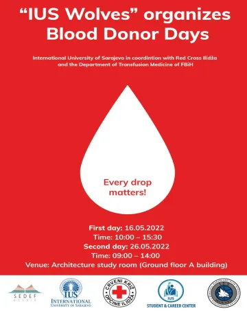 "IUS Wolves" organizuju dane darivanja krvi u saradnji sa Crvenim križem Ilidža i Zavodom za transfuzijsku medicinu FBiH