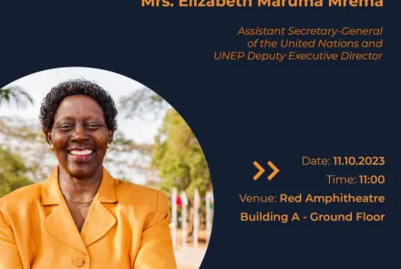 11OctoberDialogue with the students: Ms. Elizabeth Maruma Mrema 11:00 - Red Amphitheater The United Nations Environment Programme (UNEP) is pleased to inform you that
