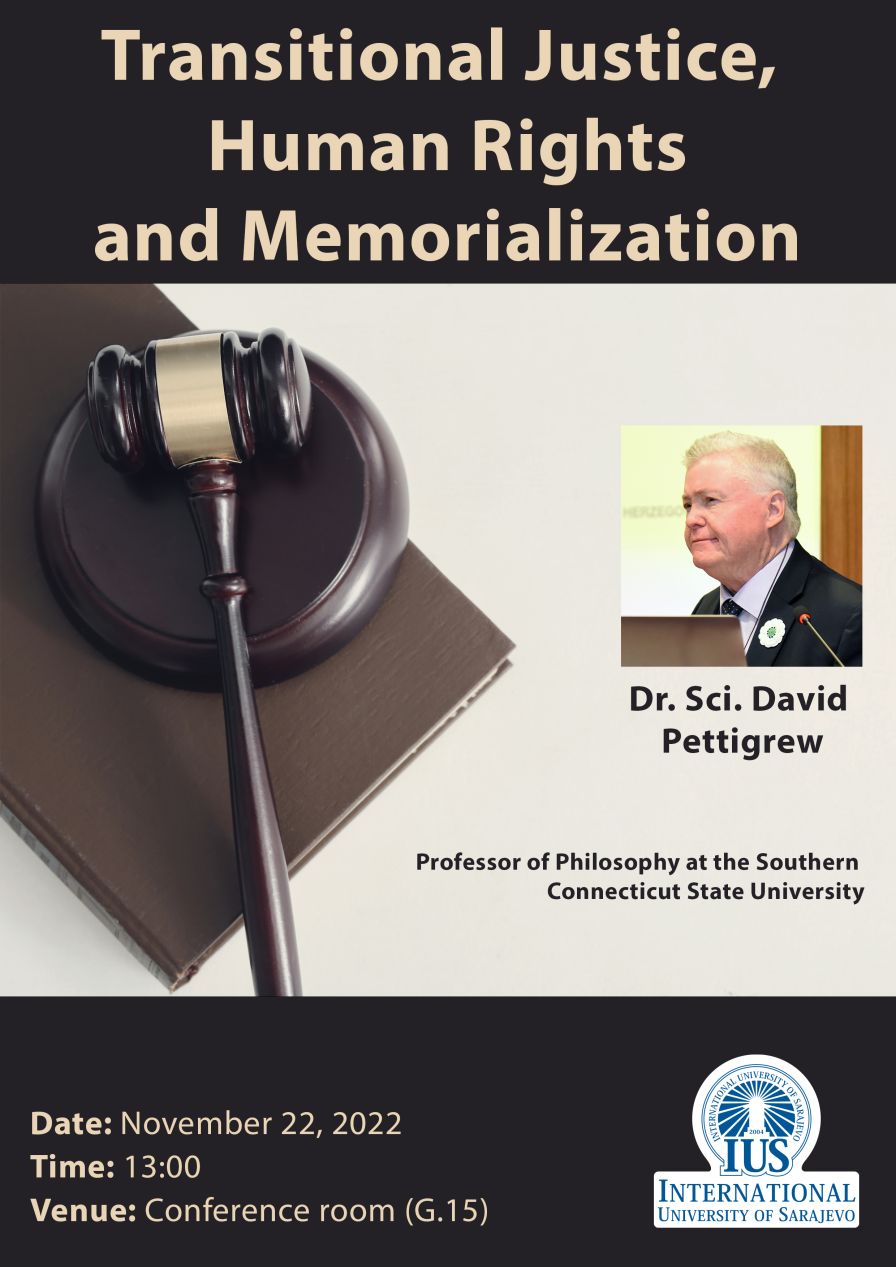 Prof. Dr. David Pettigrew will discuss the importance of transitional justice initiatives for Bosnia and Herzegovina as a post-genocide society. Furthermore, he will emphasize the crucial need for transitional justice initiatives that recognize human rights and human dignity of the victims and survivors. In addition, Prof. Pettigrew will argue that it is imperative for the High Representative to establish protected national memorials at the sites of former concentration camps and other atrocity sites in Republika Srpska.