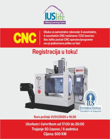 IUS Life centar ca cjeloživotno učenje organizuje obuku na CNC mašinama