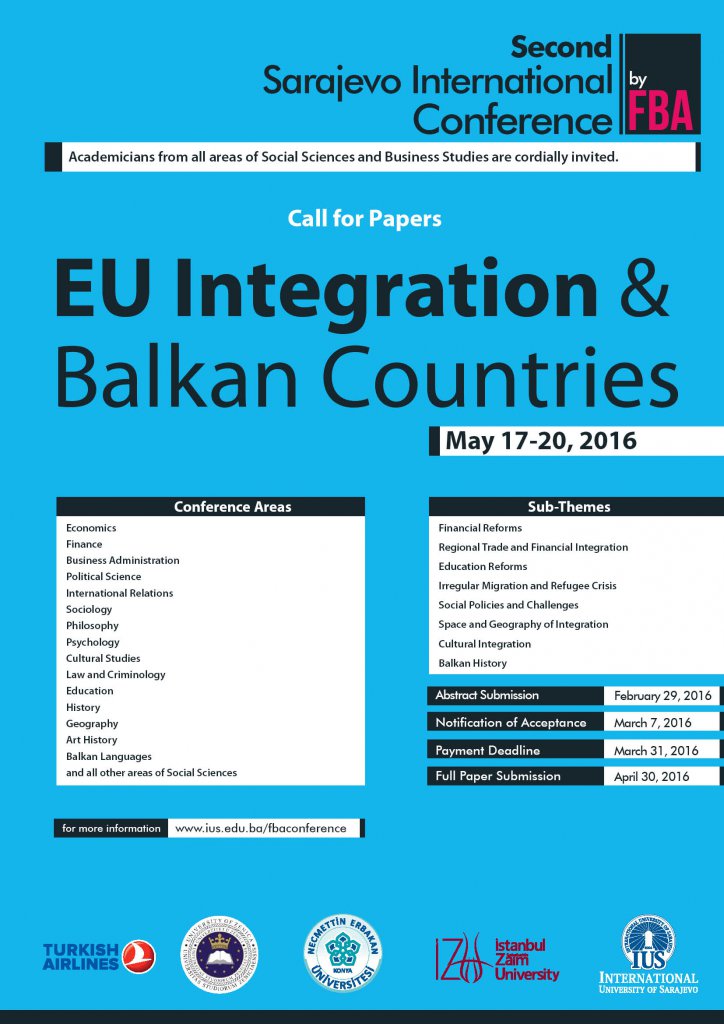 Second Sarajevo International Conference of Social Sciences is starting tomorrow on May 17th, 2016 at 09:30.