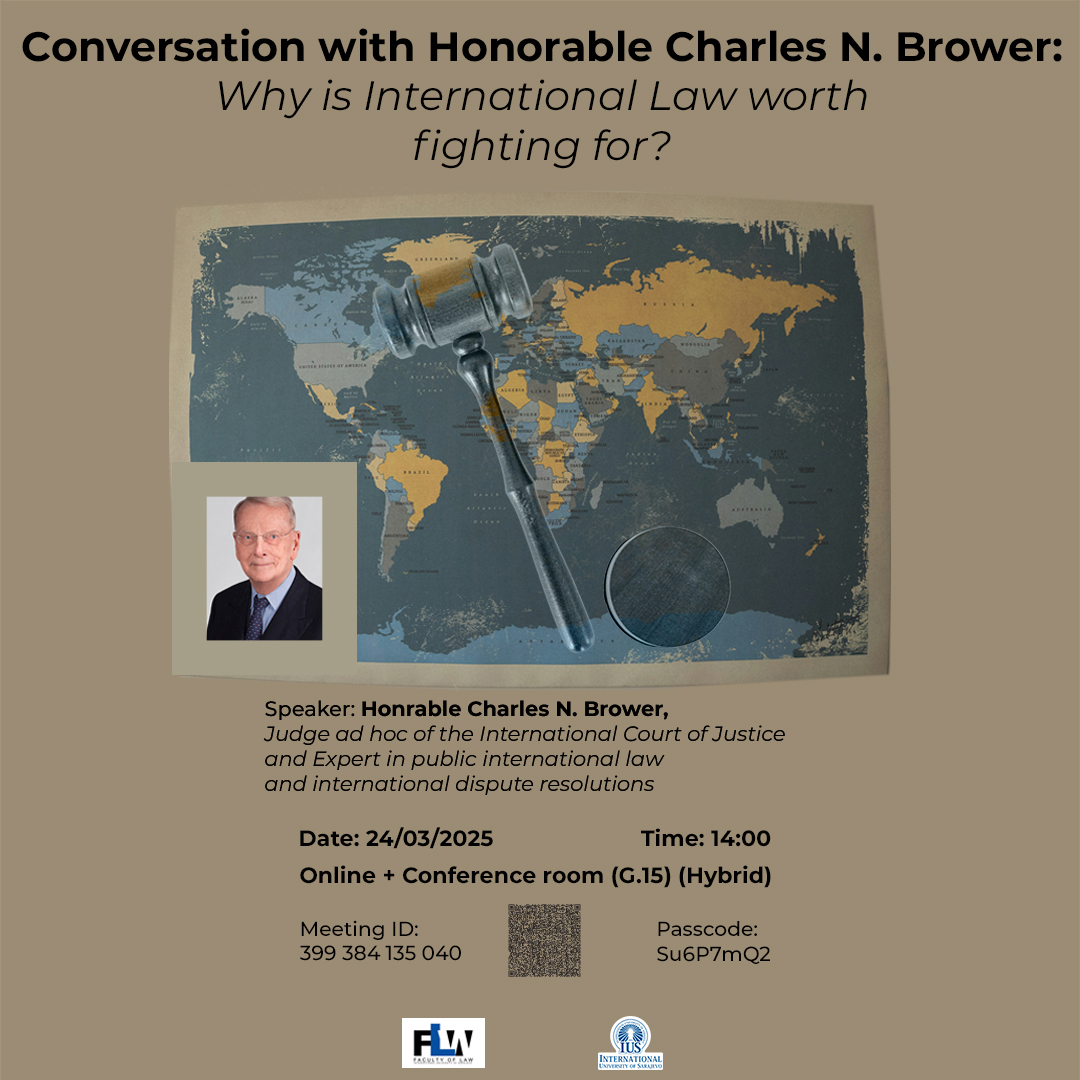 The IUS Faculty of Law (FLW) is organizing an event with Honorable Charles N. Brower who will talk about the scope, role and effects of international law and dispute resolution have been under scrutiny over the past decade, with governments and the legal profession deliberating reforms to refresh the body of international law for the modern needs and challenges.