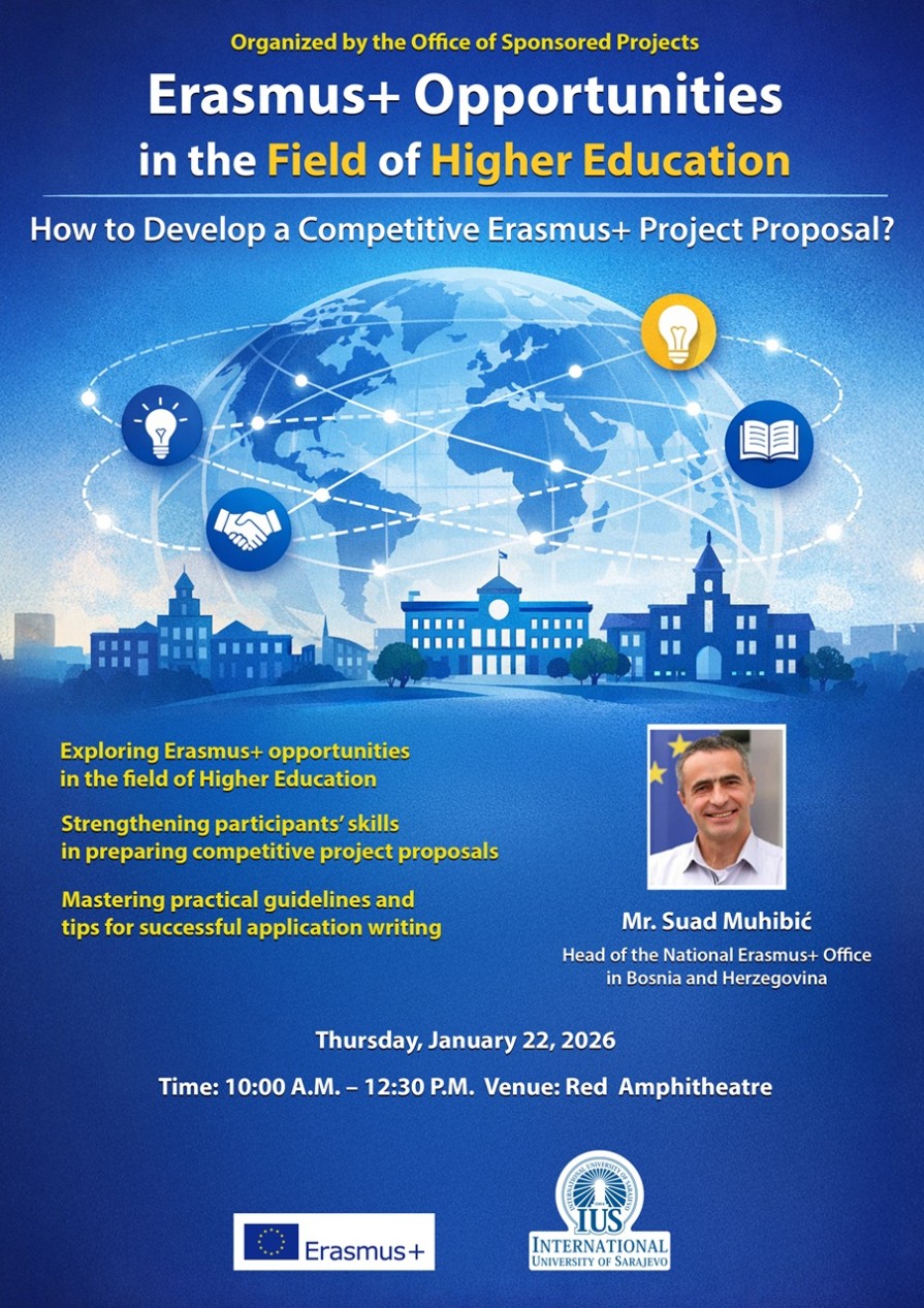 The IUS Office of Sponsored Projects (OSP) is organizing a workshop “Erasmus+ Opportunities in the Field of Higher Education: How to Develop a Competitive Erasmus+ Project Proposal” and learn how to prepare stronger, more competitive Erasmus+ applications.