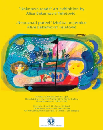 An exhibition of paintings of artist Alisa Bakamović Teletović will be officially opened in the Art Gallery of the International University of Sarajevo (IUS) on Thursday, April 23, 2015 at 12:00 pm.The exhibition will remain open for visitations until May 7, 2015.